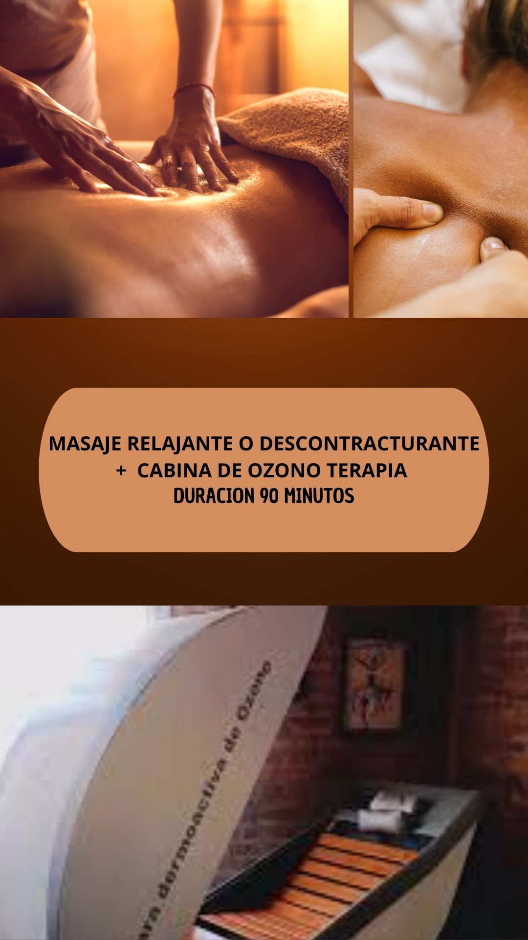 Masaje descontracturante de cuerpo entero, más cabina de ozono terapia. Duración 90 minutos